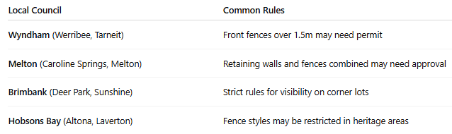 Planning to build or replace a fence in Victoria? Whether you’re in Werribee, Melton, Caroline Springs, or Hoppers Crossing, it’s important to understand the state-wide rules under the Victorian Building Regulations, as well as specific requirements from your local council.